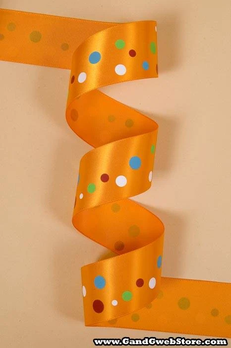 1-1/2″ X 25yds Single Face Satin W/printed Dots Tangerine #668