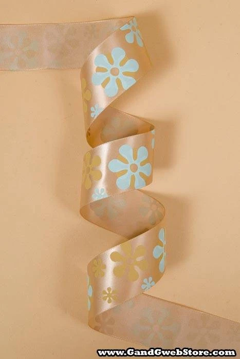 1-1/2″ X 25YDS SINGLE FACE SATIN W/PRINTED FLOWERS TAN #835