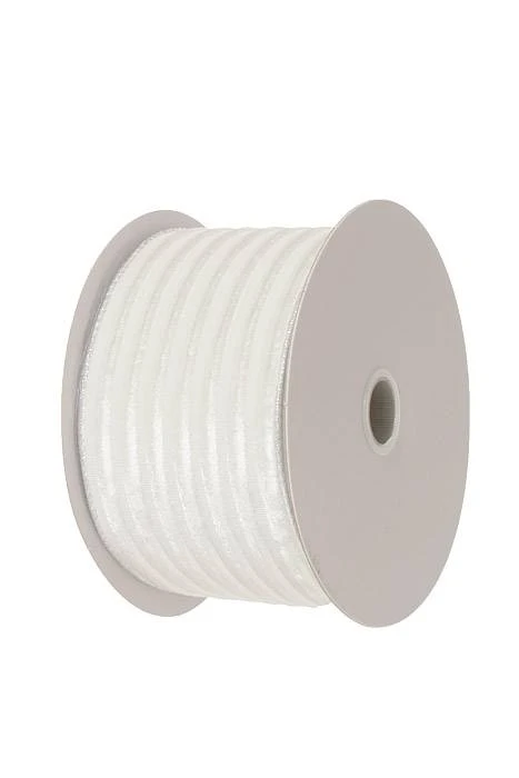 1.5″ X 10 YD RIBBED VELVET/SILVER LAME BACK WHITE