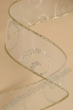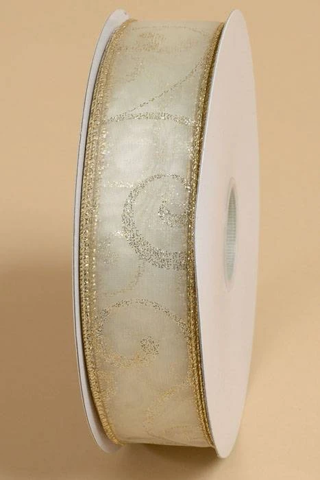 1.5″ X 50YDS SWIRL RIBBON IVORY/GOLD