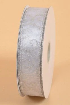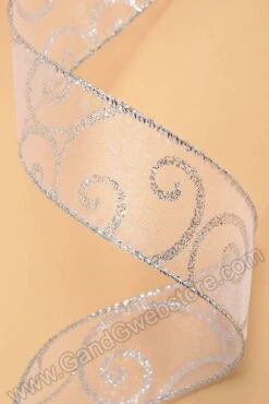 1.5″ X 50YDS SWIRL WIRED RIBBON WHITE/SILVER