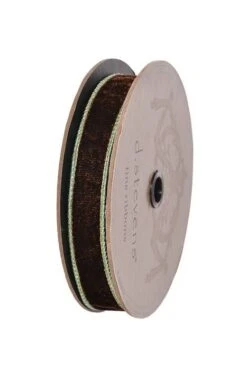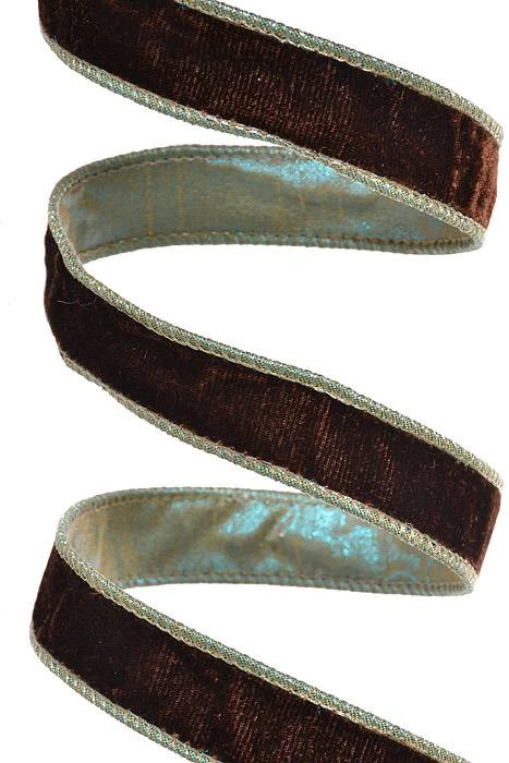 1″ X 10Yds Velvet w/Metallic Dupion Back Ribbon Blue- Gold/Chocolate