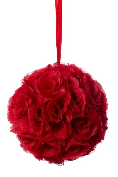 10″ ROSE BALL W/RIBBON RED