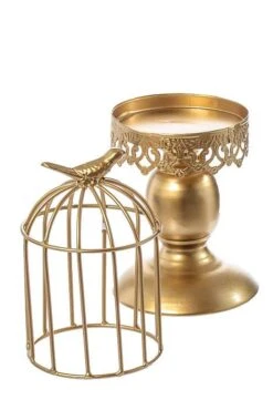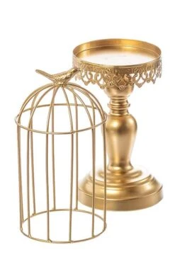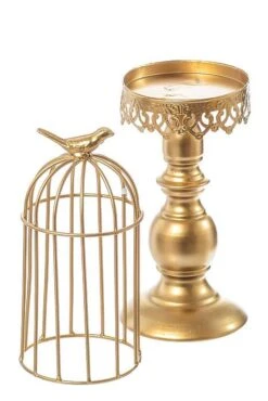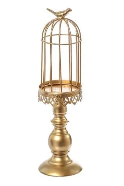16.5″ METAL CANDLE STAND W/BIRD CAGE GOLD $27.95