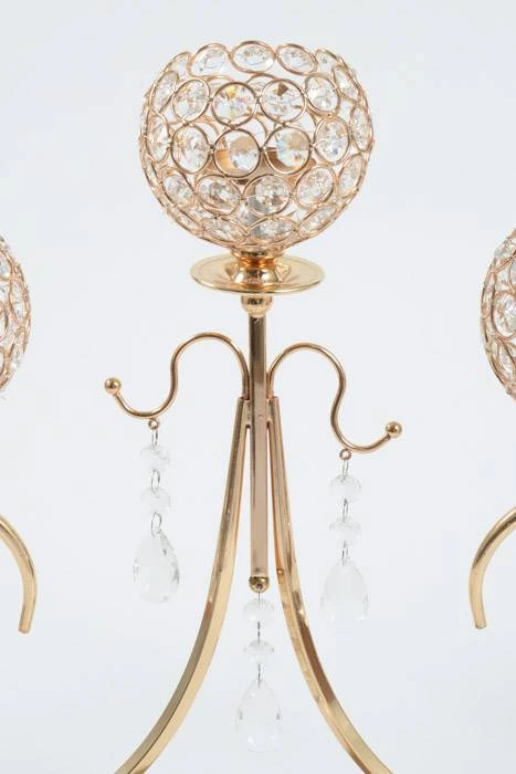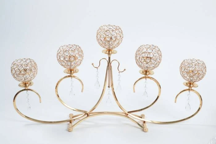 11″ 5-LIGHT CANDLE HOLDER W/CRYSTAL GOLD
