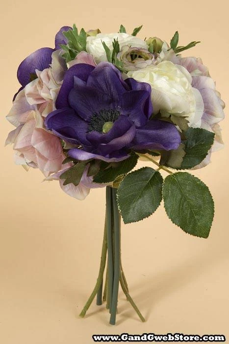 11″ HYDRANGEA/RANUNCULUS/ANEMONE BOUQUE PURPLE/LAVENDER