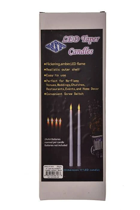 11″ LED FLICKERING TAPER CANDLE IVORY PKG/6