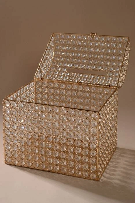 11″ X 8.5″ X 11″ CRYSTAL CARD/MONEY BOX GOLD