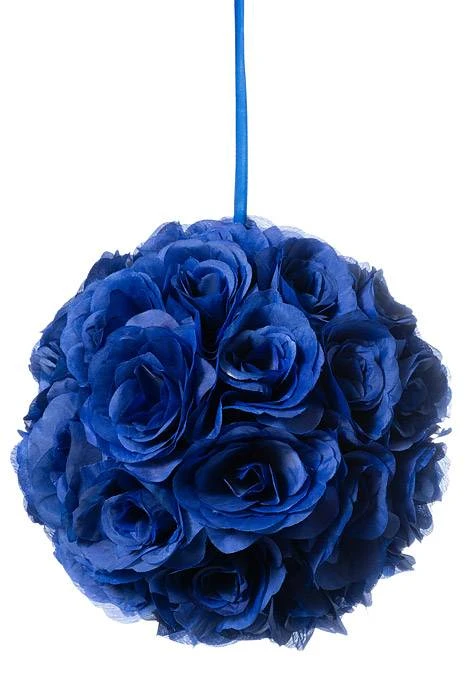 12″ ROSE BALL W/RIBBON ROYAL BLUE