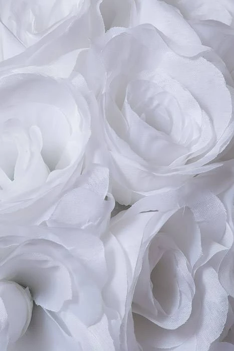 12″ ROSE BALL W/RIBBON WHITE
