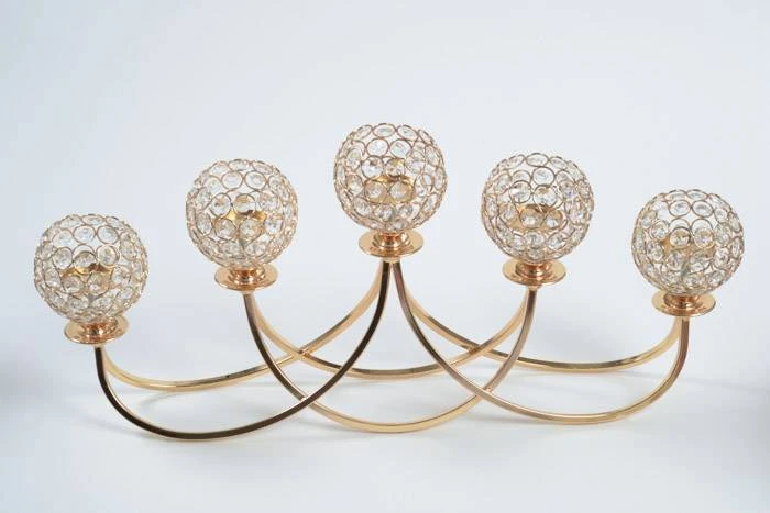 16″ 5-LIGHT CANDLE HOLDER W/CRYSTAL GOLD