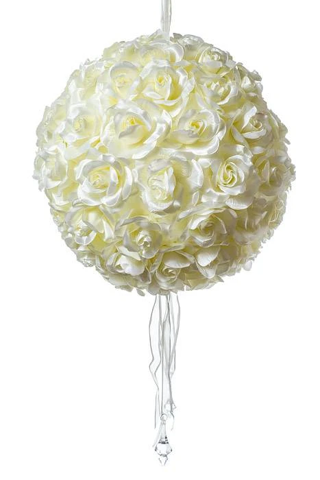 16″ ROSE BALL W/HANGING RIBBON & BEADS IVORY