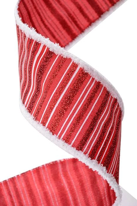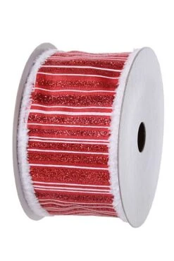 2.5″ X 10YDS WIRED GLITTER STITCH LINEN W/FUDGE RIBBON RED/WHITE