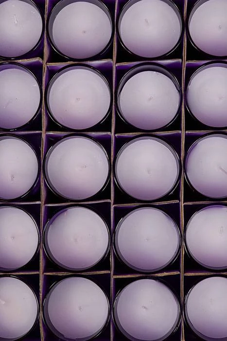 2.5″ X 2″ VOTIVE CANDLE W/GLASS PURPLE PKG/25