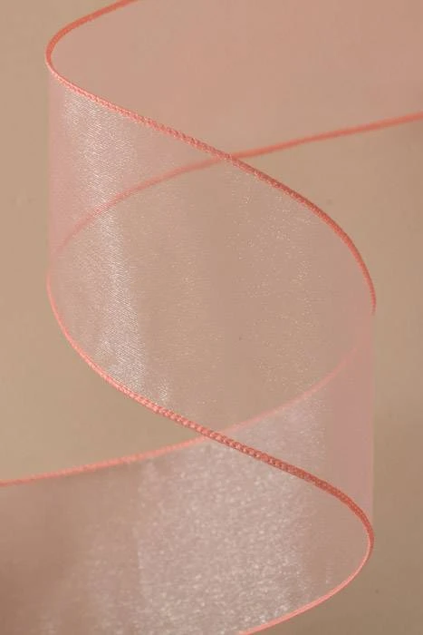 2.5″ X 50YDS WIRED SHEER CHIFFON RIBBON PEACH #40