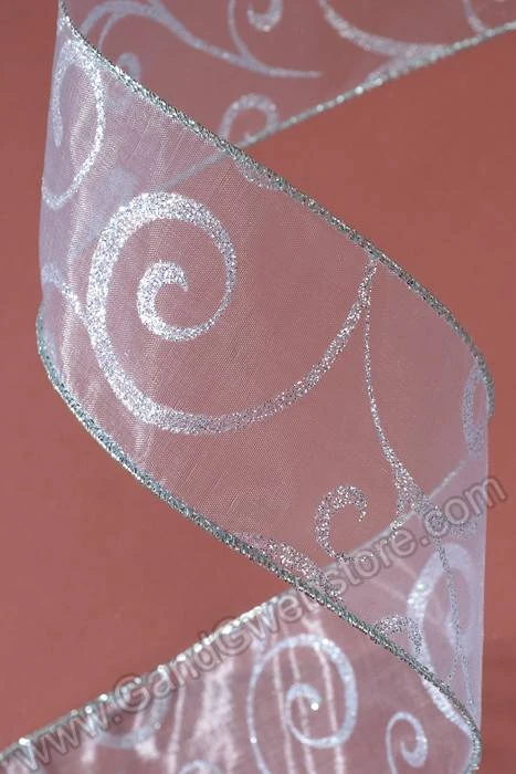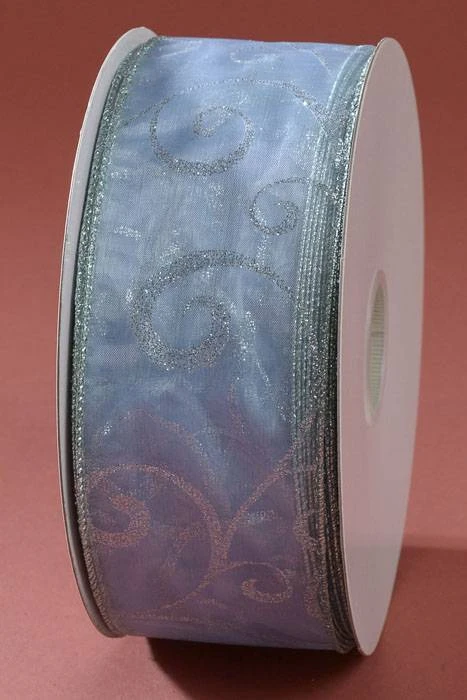 2.5″ X 50YDS WIRED SWIRL RIBBON ICED BLUE