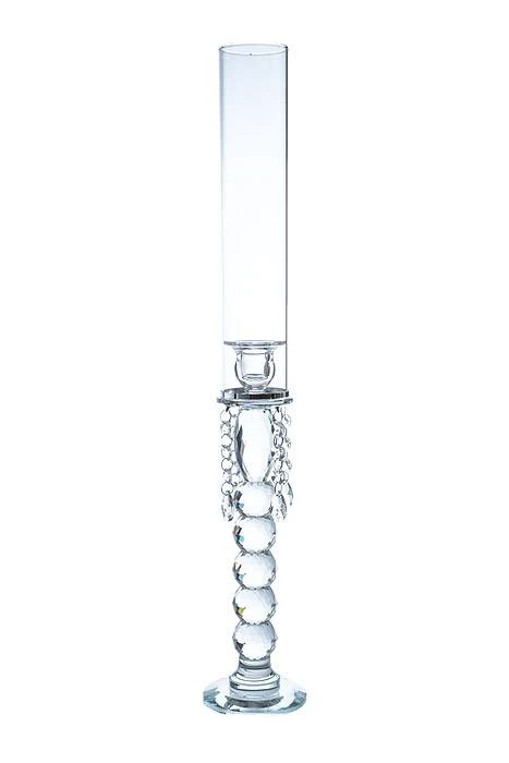 22.75″ CRYSTAL CANDLE HOLDER W/BEADS CLEAR