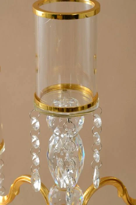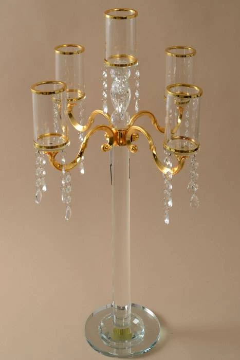 27.5″ CRYSTAL 5-LITE CANDELABRUM W/BEADS GOLD