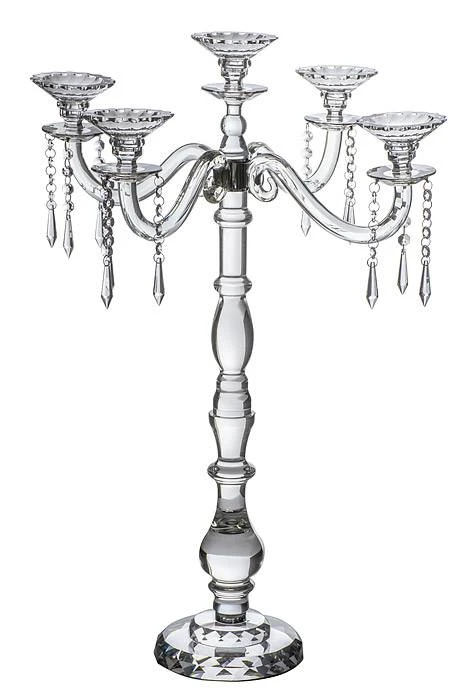 30″H CRYSTAL 5-LITE CANDELABRUM W/BEADS CLEAR