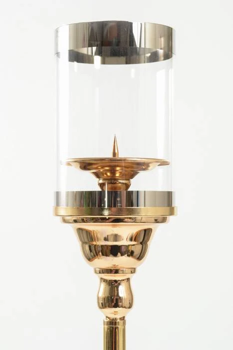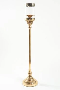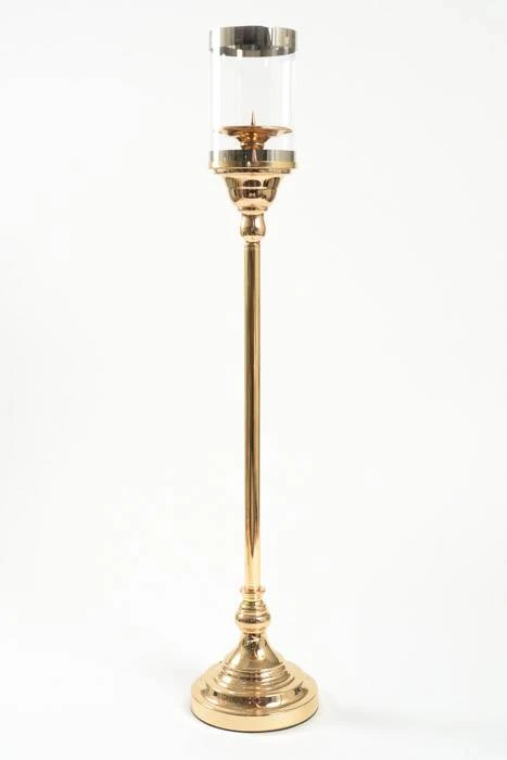 31″ METAL CANDLE HOLDER STAND W/GLASS GOLD