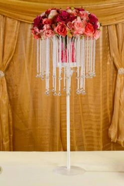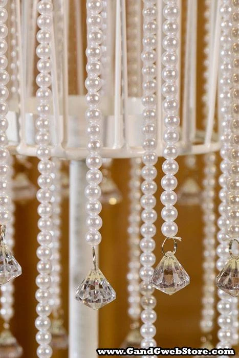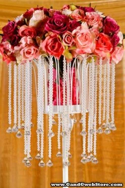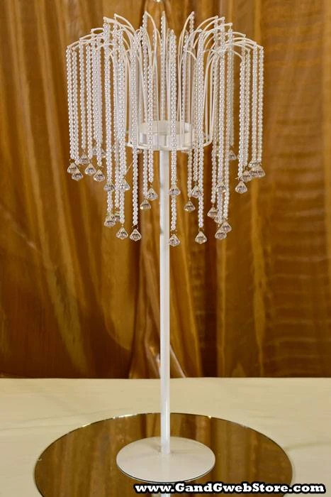 31″ TABLE TOP CANDLE HOLDER W/BEADS SHINY WHITE