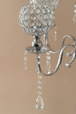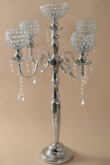 36″ METAL 5-LITE CANDELABRUM W/BEADS SILVER