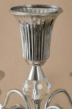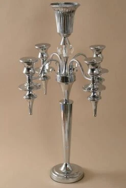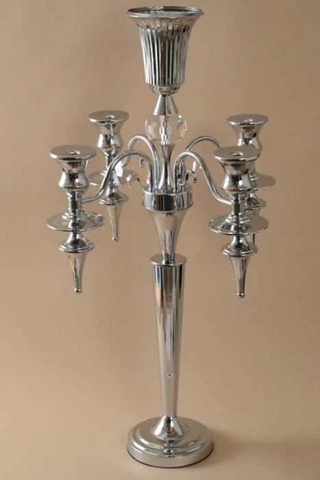 36″ METAL 5-LITE CANDELABRUM W/CRYSTAL SILVER