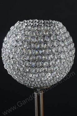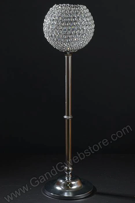 37″ CRYSTAL BEAD CANDLE HOLDER SILVER