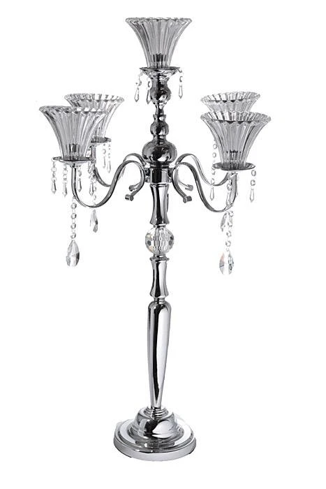 39″ METAL 5-LITE CANDELABRUM W/CRYSTAL SILVER