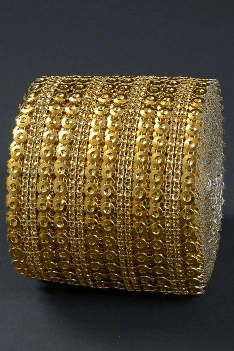 4.5″ X 10YDS SEQUIN/DIAMOND WRAP GOLD