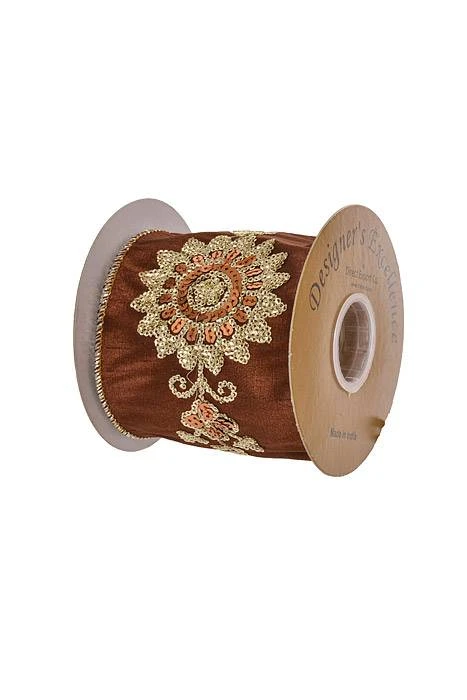 4″ X 5YDS WIRED SEQUIN EMBLEM DUPION CHOCOLATE