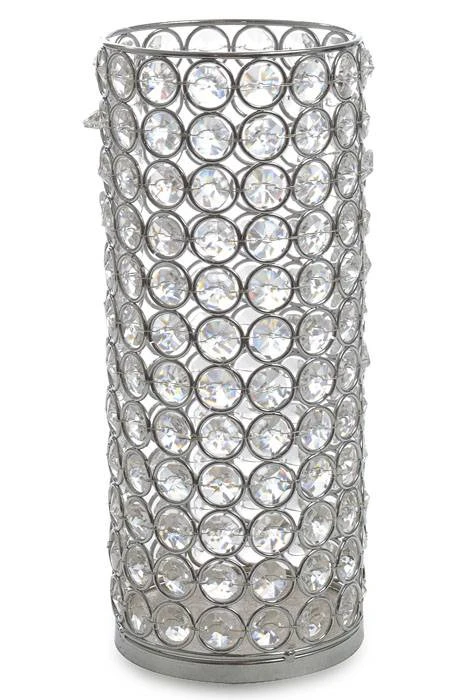 4″ X 9.75″ CRYSTAL BEAD CYLINDER CANDLE HOLDER SILVER