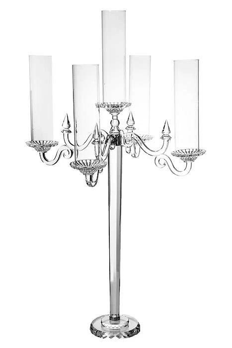 43″ CRYSTAL 5-LITE CANDELABRUM W/GLASS CLEAR