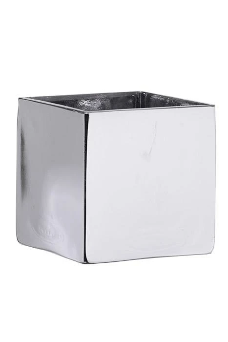6″ X 5.80″ SQUARE GLASS VASE SILVER