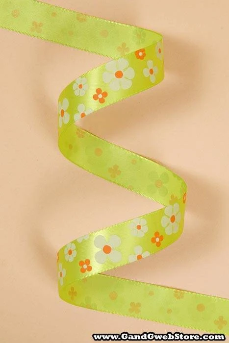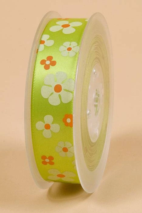 7/8″ X 25YDS SINGLE FACE SATIN W/PRINTED FLOWERS APPLE GREEN #550