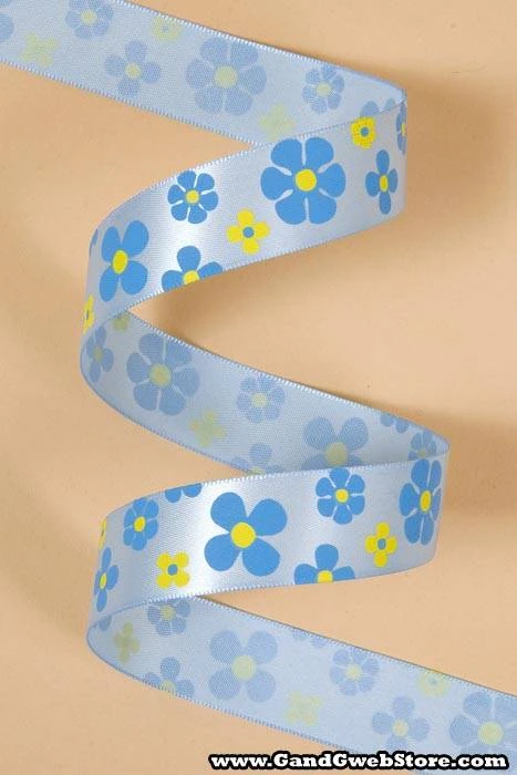 7/8″ X 25YDS SINGLE FACE SATIN W/PRINTED FLOWERS BLUE TOPAZ #308