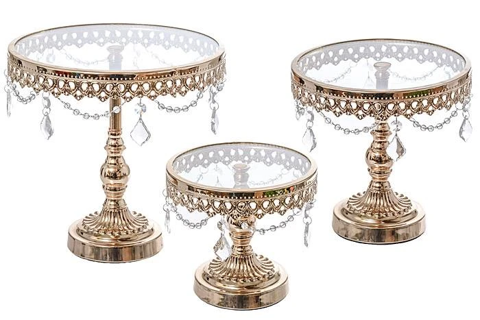 7″ H ROUND CAKE STAND W/CRYSTAL GOLD $29.95