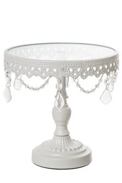 9″ H ROUND CAKE STAND W/CRYSTAL WHITE $29.50