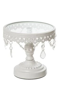 10.5″ H ROUND CAKE STAND W/CRYSTAL WHITE $34.50