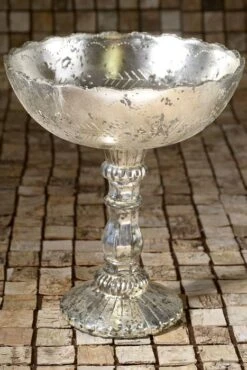 8″ X 9.5″ GLASS DESIRAY COMPOTE SILVER