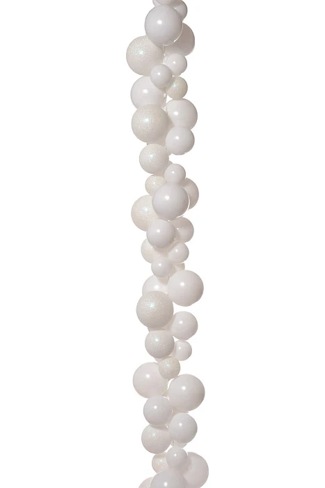 8Ft Shiny/Glitter Ball Garland White