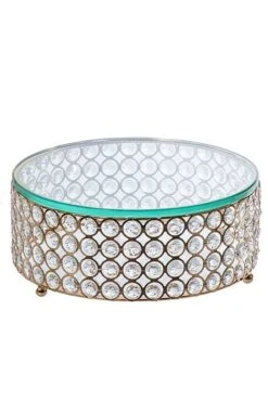 9.75″ GLASS/METAL/BEAD CAKE STAND GOLD $74.93