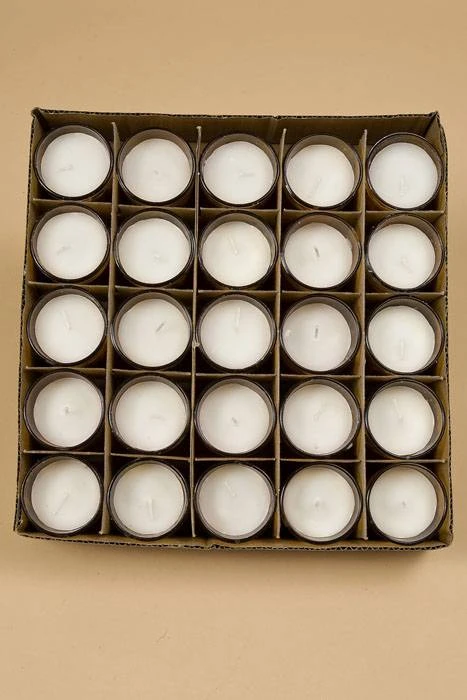 VOTIVE CANDLE IN GLASS AMBER PKG/25